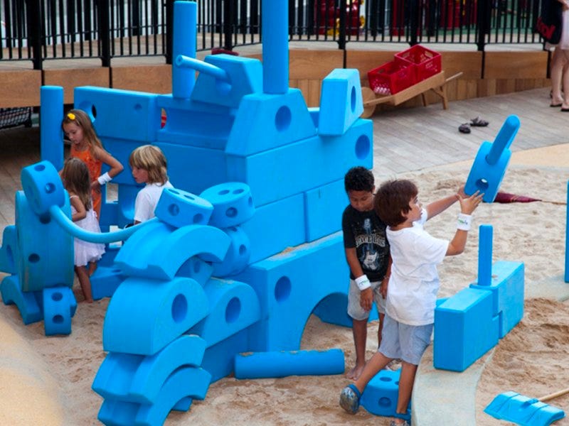 Designer Cas Holman has developed the concept of collective playgrounds in which she has re-imagined the archetypal playground and designed a mobile storage unit to translate the playground into a “pop-up." It can now be found in schools, children's museums, and playgrounds around the world.